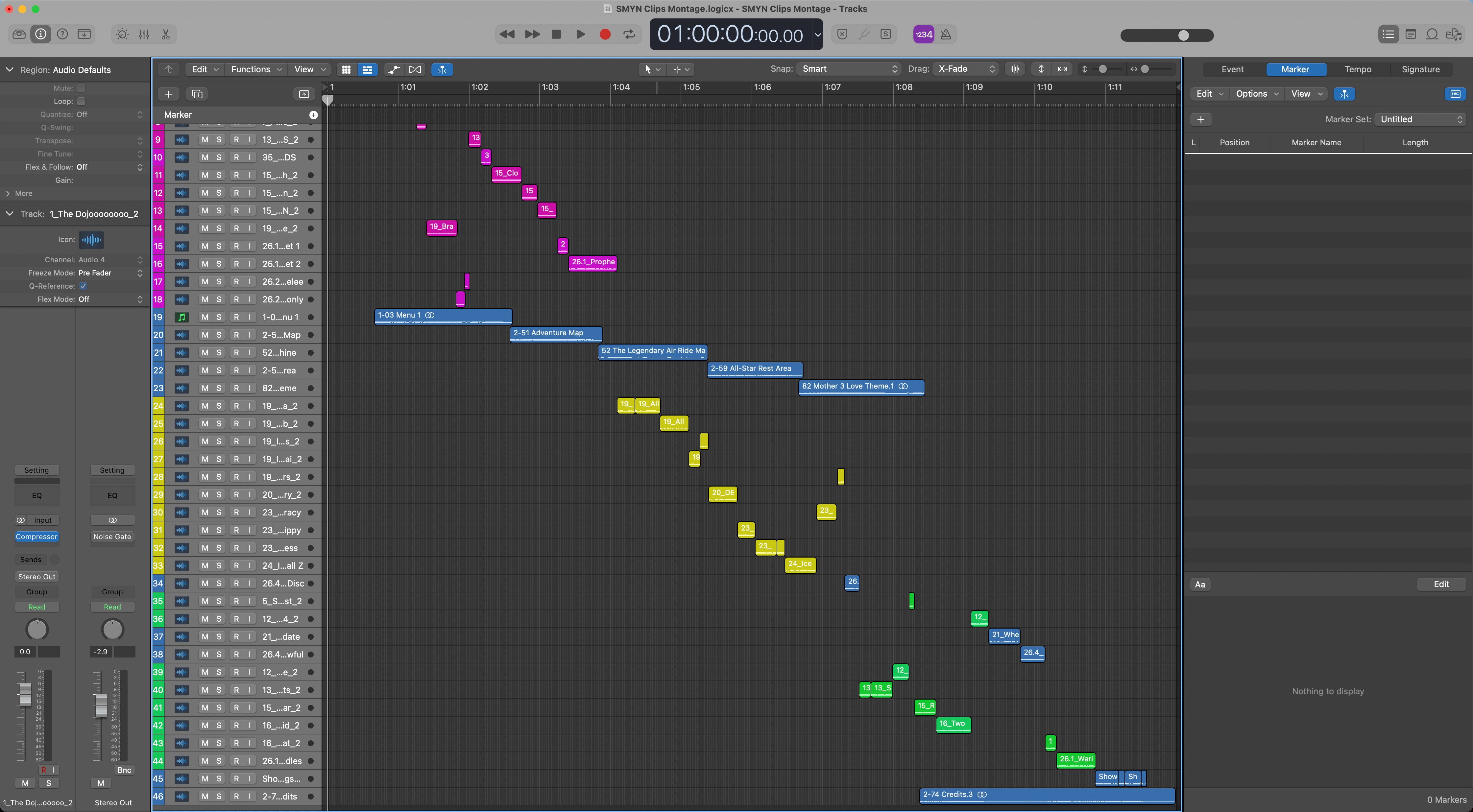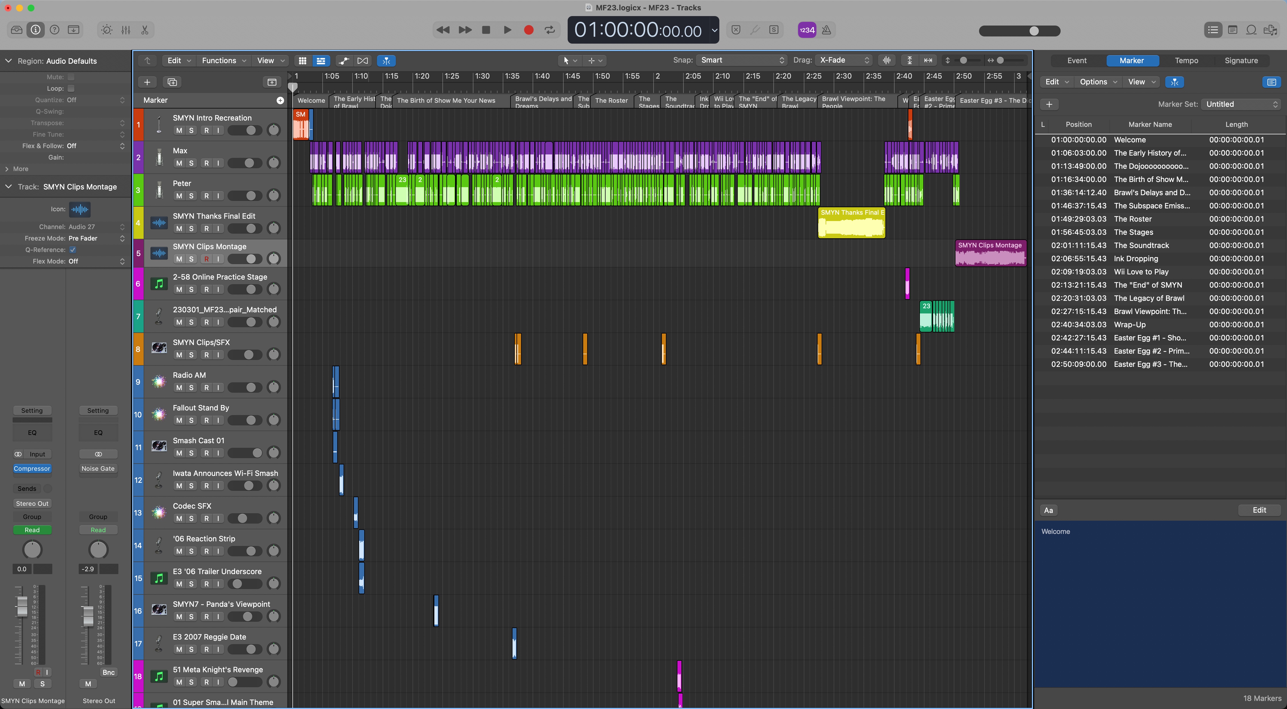 My Logic Pro project files were for the intro, the thank you, the clips montage, and the core show itself. I segmented those smaller sections out to keep my main project file cleaner. That really helped my sanity, because those files had a lot of tracks, especially the montage.