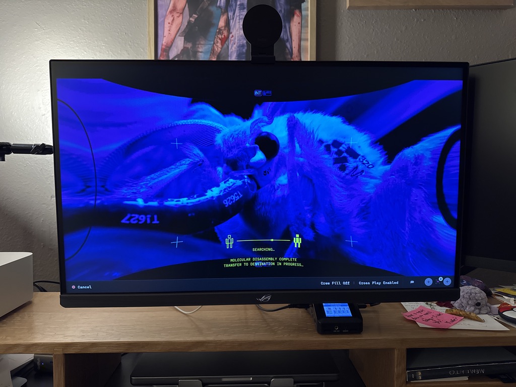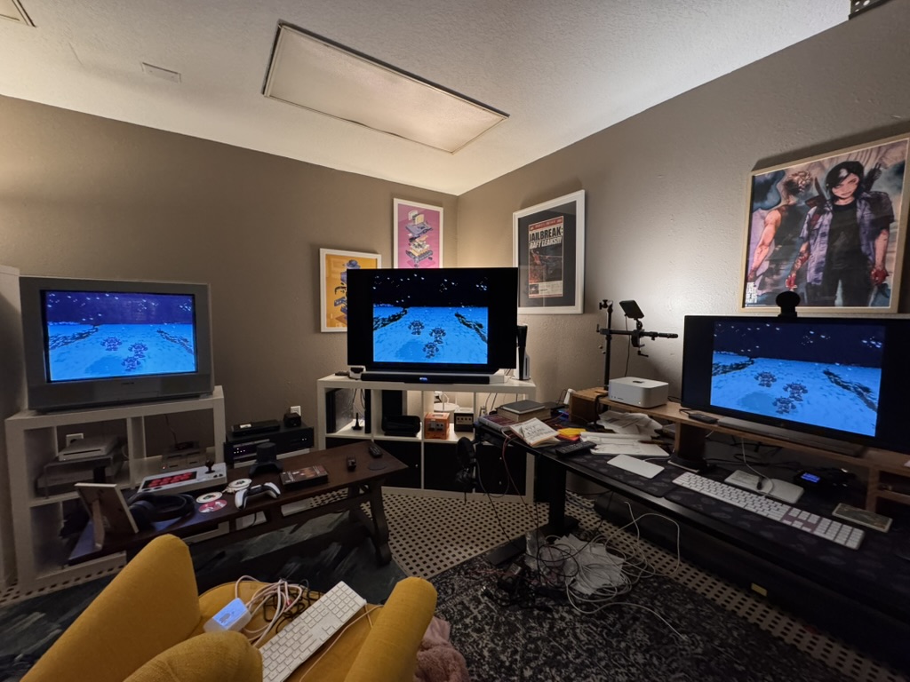 - My office is almost put back together. I got a new monitor last week as well. Here's a picture of Final Fantasy III running off my SNES on my CRT, my OLED, and my new monitor. I may have also decided to inch closer toward a PC gamer and play Marathon on it...